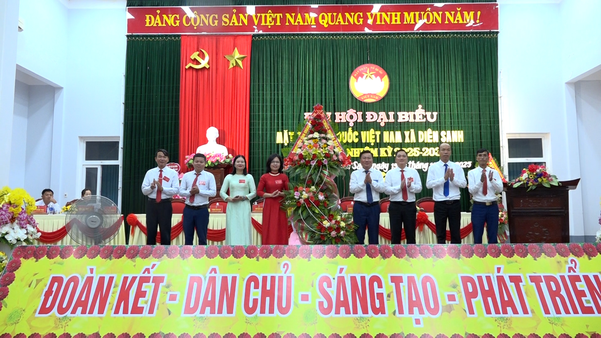 Lãnh đạo xã Diên Sanh tặng hoa chúc mừng đại hội