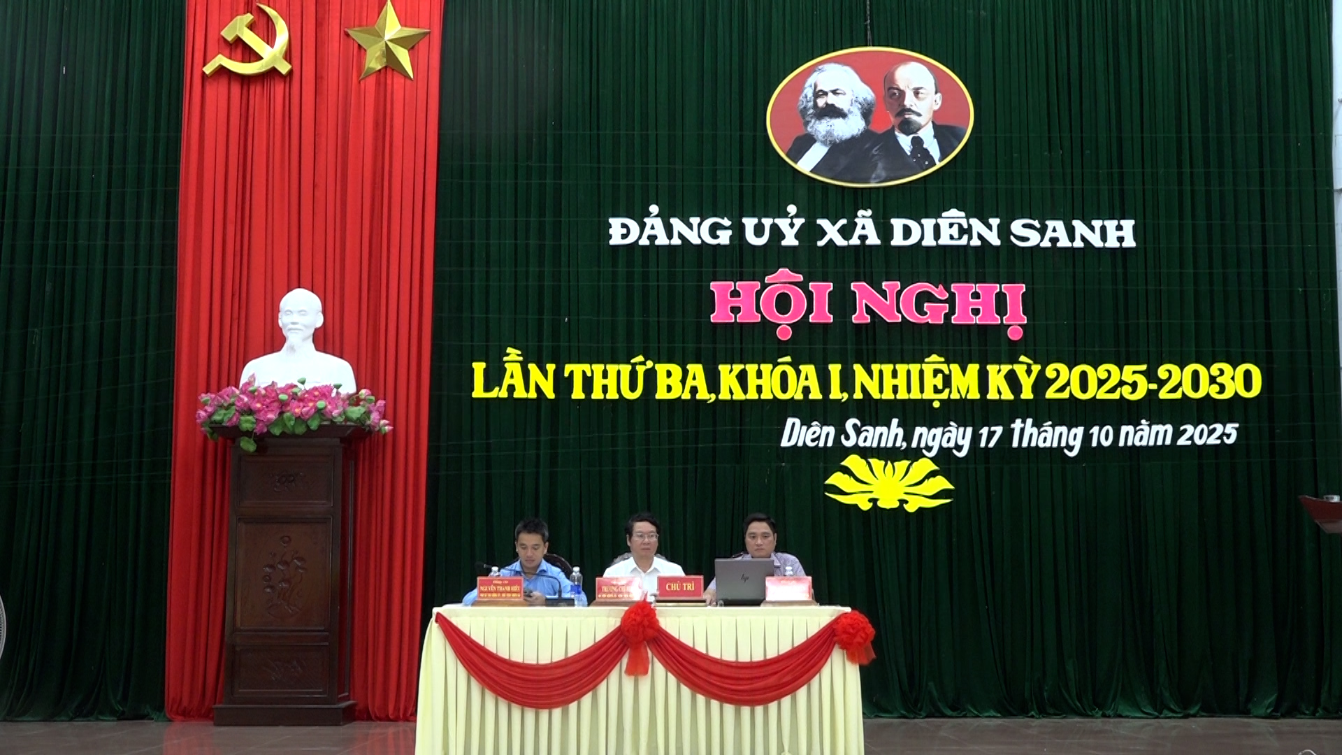 Ngày 17/10, Ban Chấp hành Đảng bộ xã Diên Sanh tổ chức Hội nghị lần thứ III, nhiệm kỳ 2025-2030 nhằm đánh giá công tác xây dựng đảng, hệ thống chính trị; tình hình thực hiện nhiệm vụ phát triển kinh tế - xã hội, quốc phòng, an ninh quý III, triển khai nhiệm vụ quý IV/2025. Đồng chí Trương Chí Hiếu, Bí thư Đảng ủy, Chủ tịch HĐND xã; Đồng chí Phạm Duy Tuyền, Phó Bí thư Thường trực Đảng ủy xã và đồng chí Nguyễn Thanh Hiếu, Phó Bí thư Đảng ủy, Chủ tịch UBND xã chủ trì hội nghị.