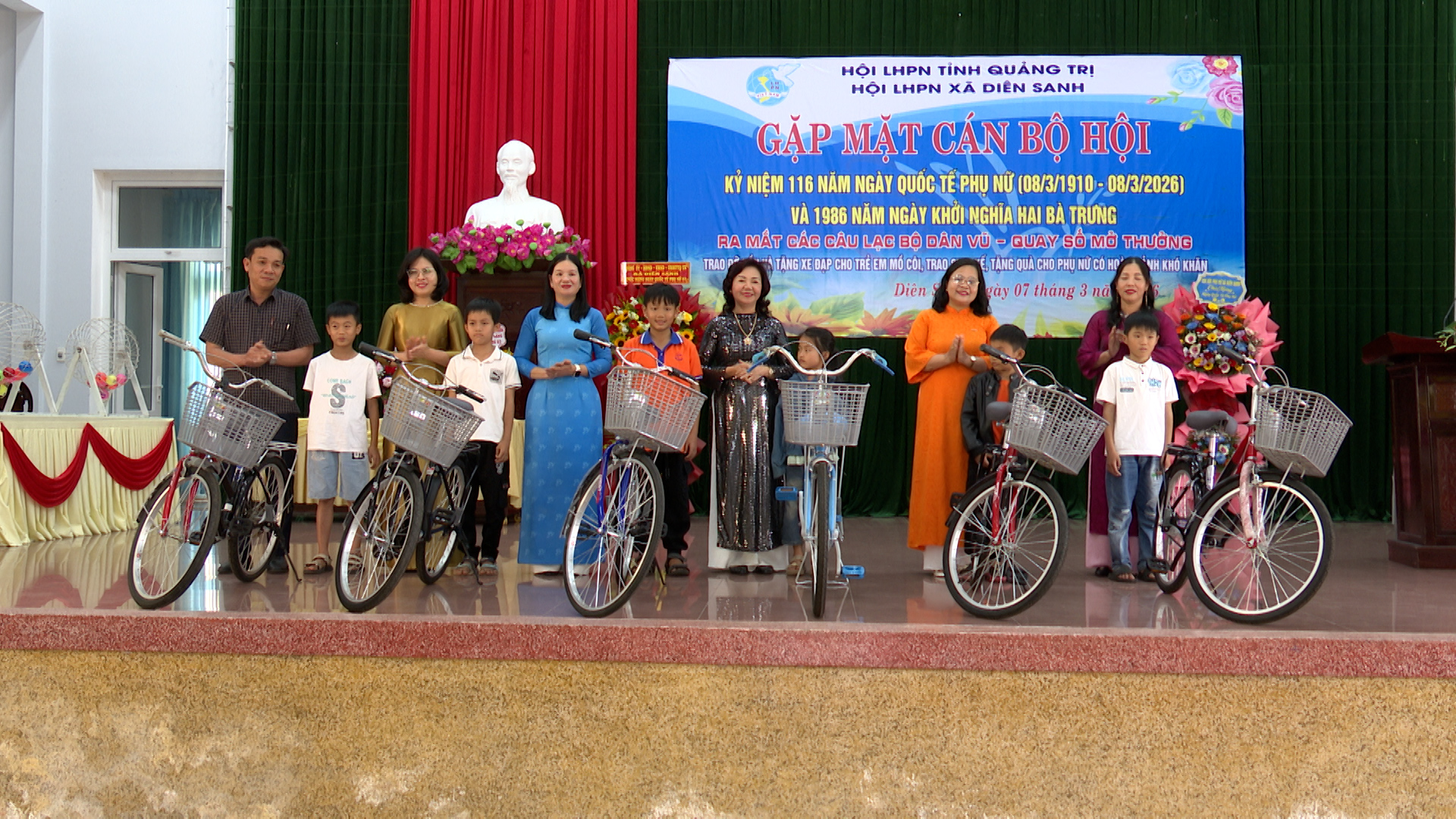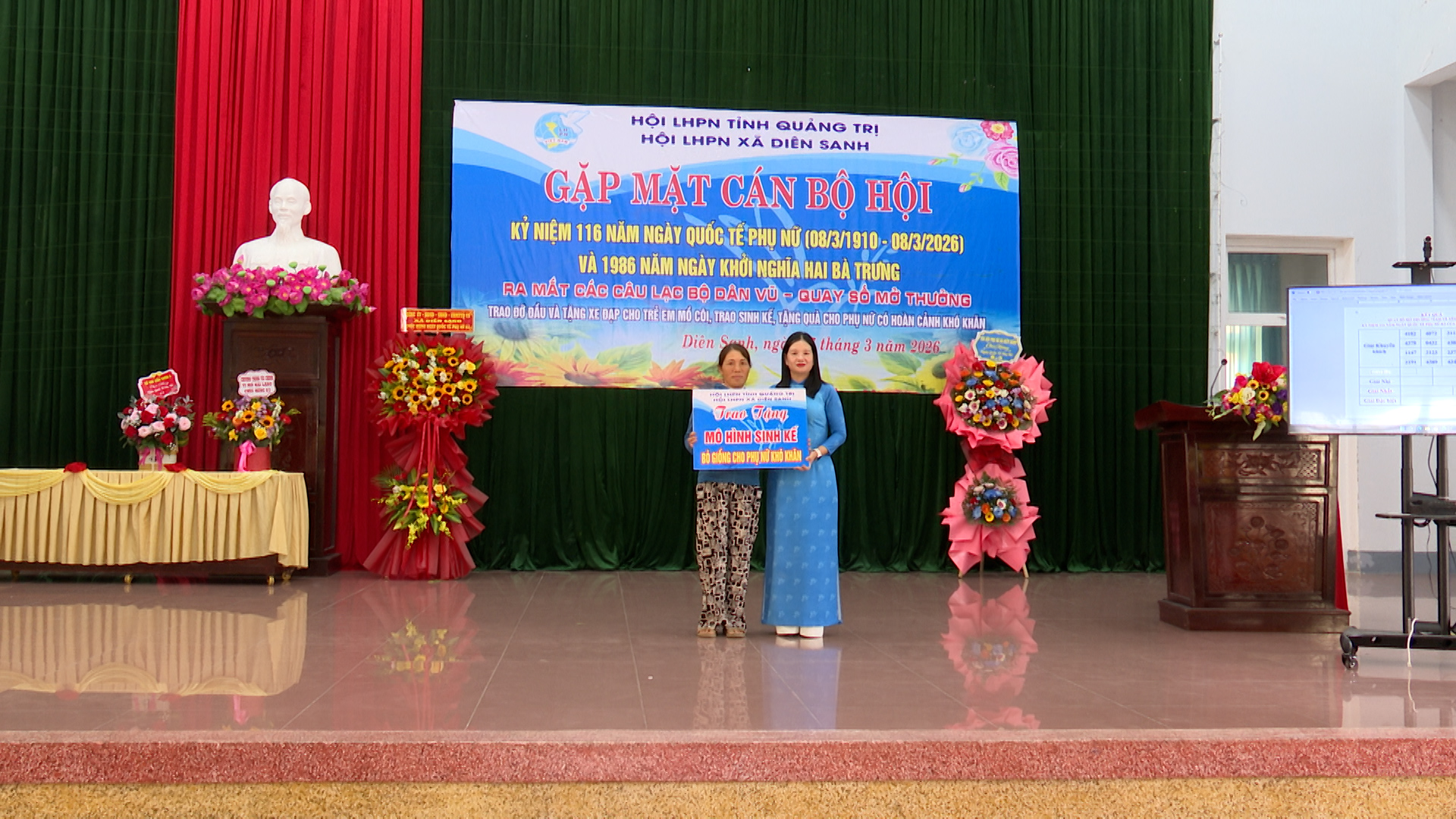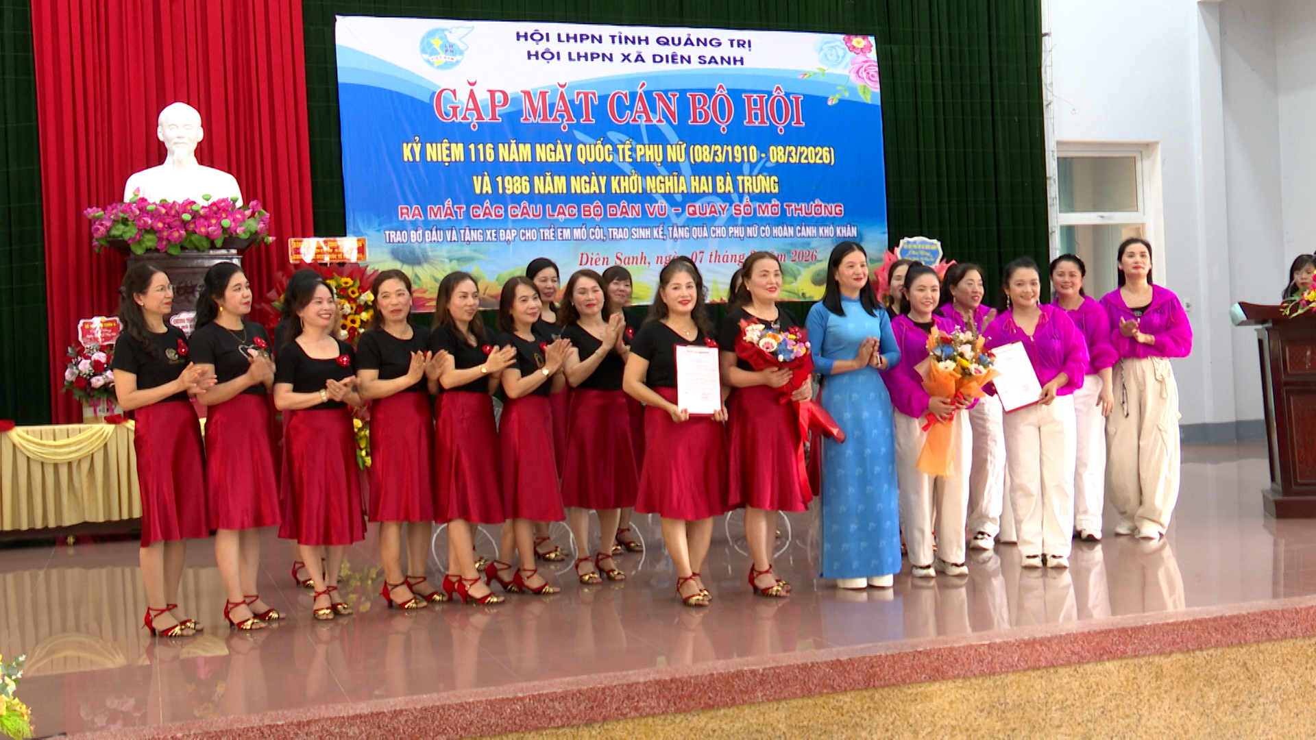 Buổi lễ đã thực hiện thủ tục ra mắt các Câu lạc bộ Dân vũ và các hoạt động nhân văn như quay số mở thưởng tạo nguồn quỹ trao sinh kế cho phụ nữ khó khăn, nhận đỡ đầu trẻ em mồ côi. Những phần quà thiết thực này đã góp phần sưởi ấm niềm tin, giúp các gia đình vươn lên bền vững.