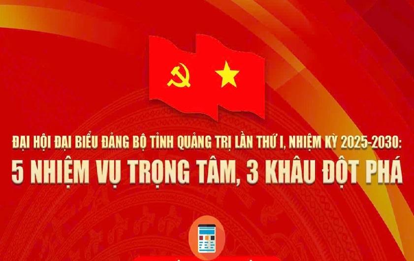 Đại hội đại biểu Đảng bộ tỉnh Quảng Trị lần thứ I, nhiệm kỳ 2025-2030 là sự kiện chính trị trọng đại. Đại hội có nhiệm vụ đánh giá kết quả thực hiện Nghị quyết Đại hội Đảng bộ tỉnh nhiệm kỳ 2020-2025; quyết định phương hướng, mục tiêu, chỉ tiêu, nhiệm vụ, giải pháp nhiệm kỳ 2025-2030.