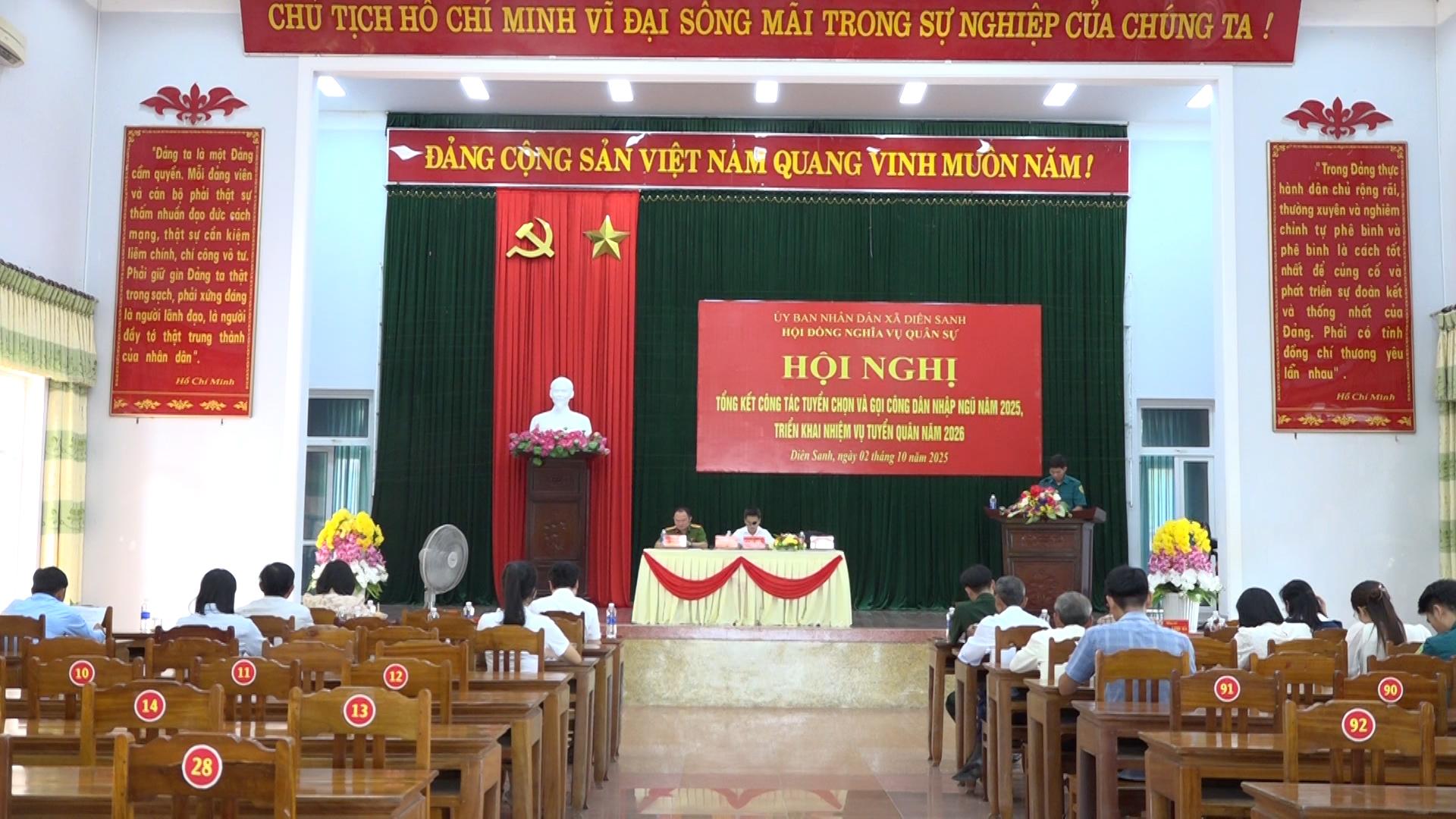 Ngày 2/10, Hội đồng Nghĩa vụ Quân sự xã Diên Sanh tổ chức hội nghị tổng kết công tác tuyển chọn và gọi công dân nhập ngũ năm 2025, triển khai nhiệm vụ tuyển quân năm 2026. Tham dự có đ/c Trần Khương Đức – Phó Chỉ huy trưởng Ban Chỉ huy Phòng thủ khu vực 4 Triệu Phong. Về phía xã có đ/c Trương Chí Hiếu – Bí thư Đảng ủy, Chủ tịch HĐND xã.