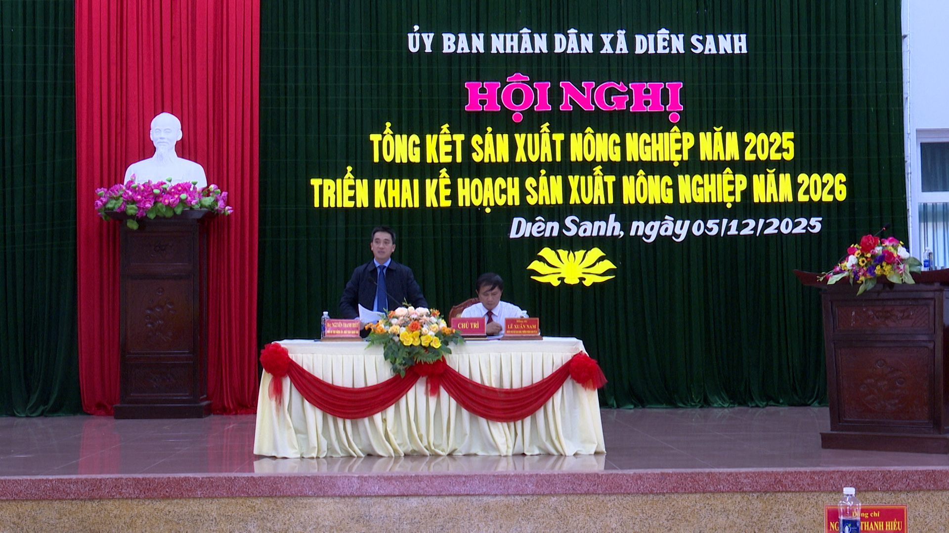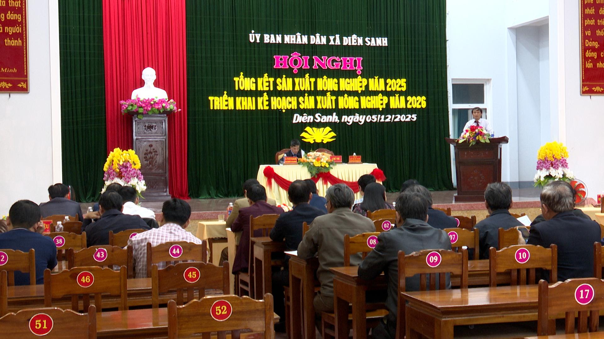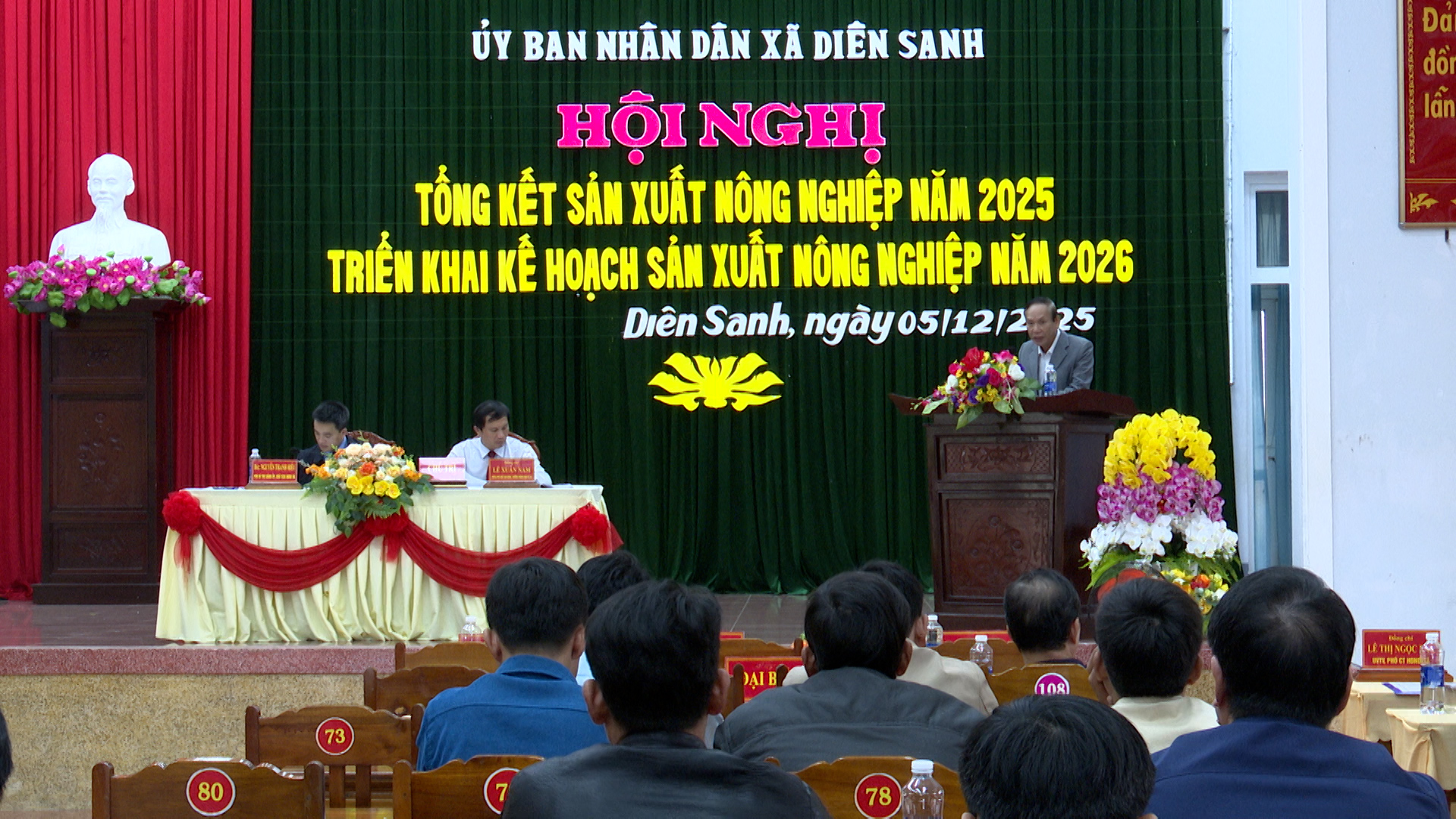 Ngày 5/12, UBND xã Diên Sanh tổ chức Hội nghị tổng kết sản xuất nông nghiệp năm 2025 và triển khai kế hoạch năm 2026. Dự chỉ đạo hội nghị có Đồng chí Trương Chí Hiếu-Bí thư Đảng ủy, Chủ tịch HĐND xã, đồng chí Nguyễn Thanh Hiếu- Phó Bí thư Đảng ủy, Chủ tịch UBND xã.