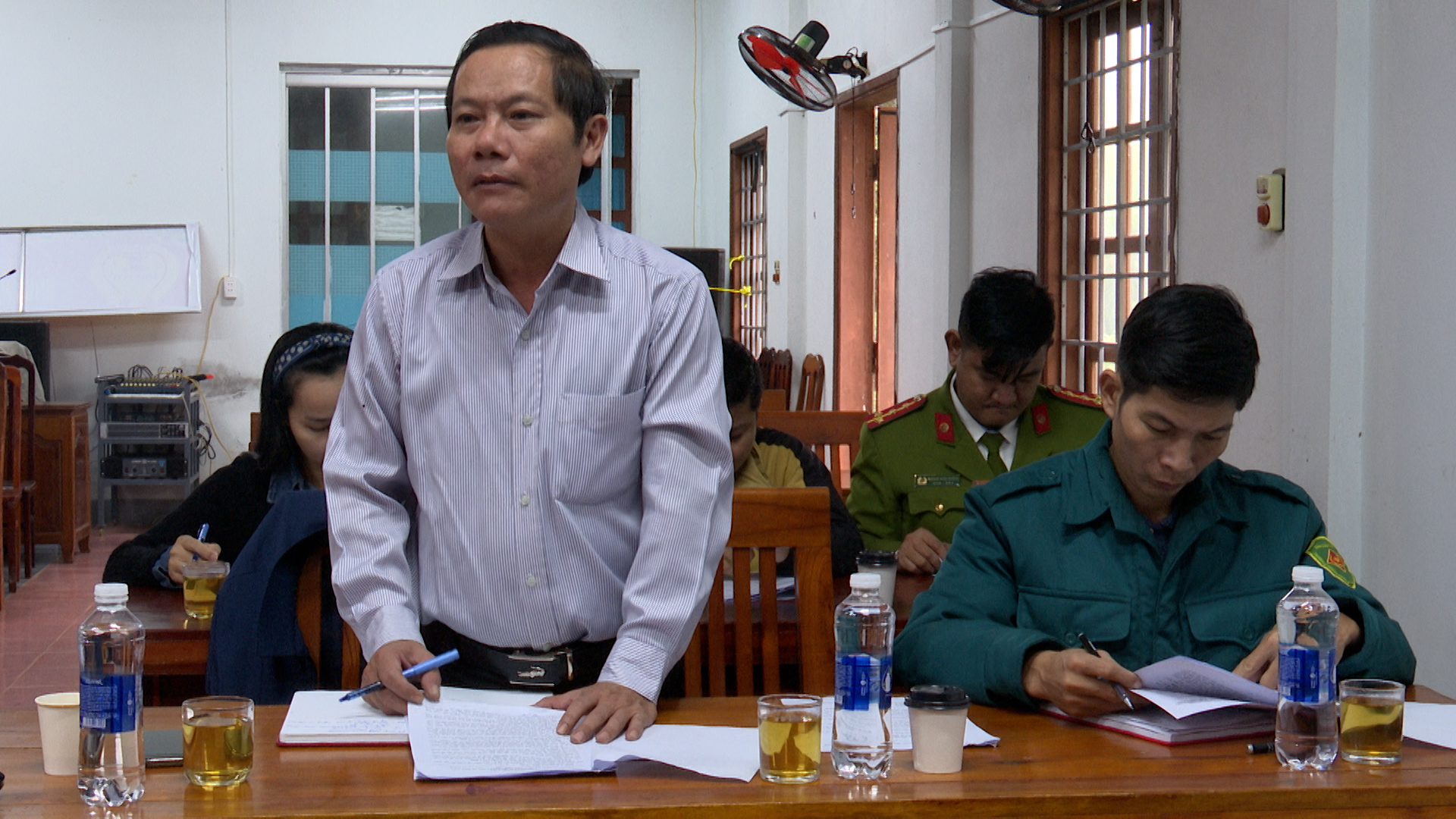 Đồng chí Nguyễn Thanh Hiếu-Phó Bí thư Đảng ủy, Chủ tịch UBND xã, Chủ tịch Ủy ban Bầu cử xã chủ trì hội nghị
