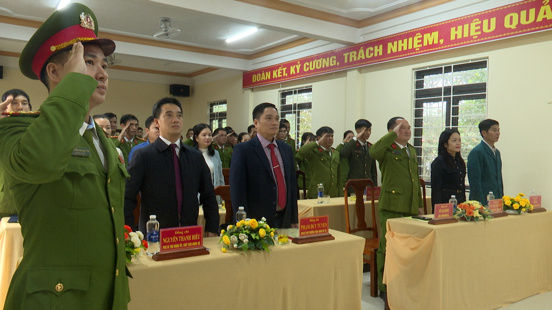 Đồng chí Thiếu tá Võ Nam Bình-Trưởng Công an xã Diên Sanh phát lệnh tại buổi lễ