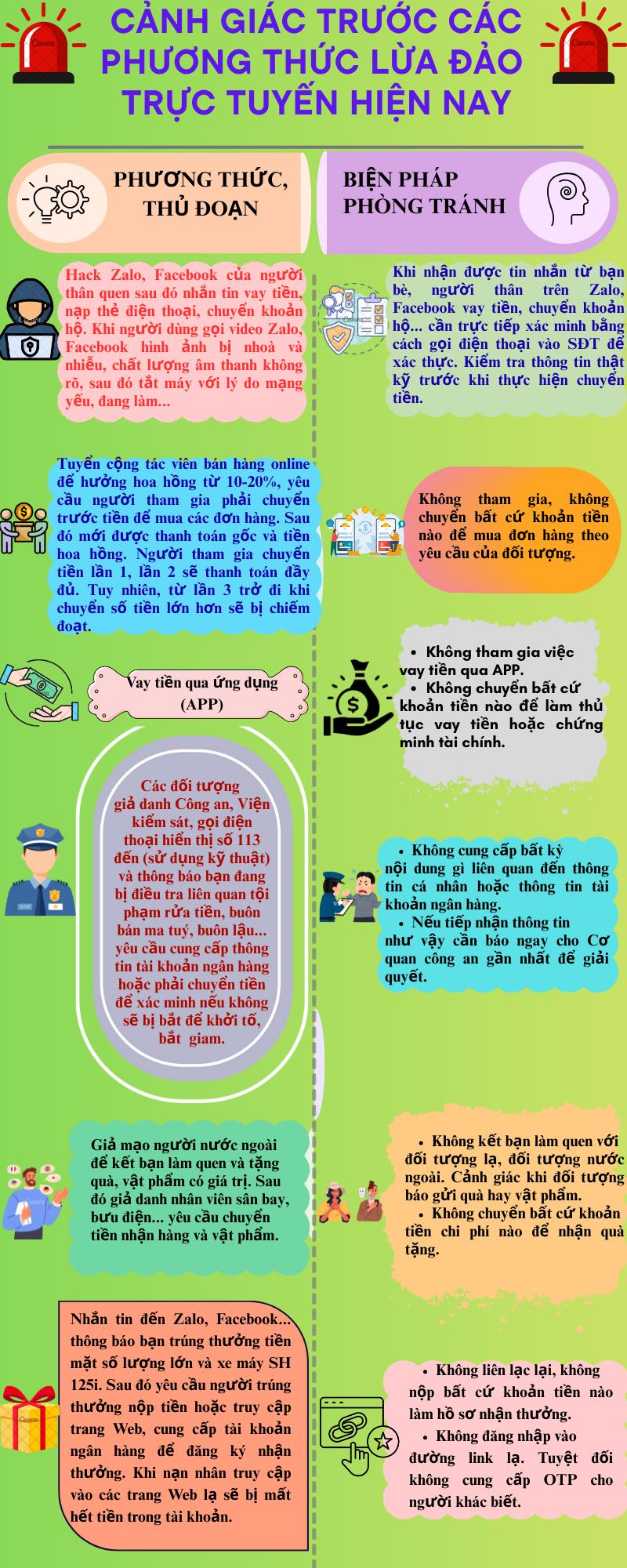 Trong bối cảnh công nghệ thông tin phát triển mạnh mẽ hiện nay, các đối tượng xấu đã triệt để lợi dụng những tiện ích mà công nghệ mang lại (như mạng xã hội, các ứng dụng nhắn tin OTT…) để thực hiện nhiều vụ lừa đảo trực tuyến, chiếm đoạt tài sản có giá trị lớn. Thủ đoạn của chúng thường dựa vào việc khai thác lòng tham, niềm tin hoặc sự lo sợ của nạn nhân để chiếm đoạt tài sản, gây thiệt hại nghiêm trọng và ảnh hưởng trực tiếp đến đời sống nhân dân. Trước thực trạng đó, bên cạnh các giải pháp kỹ thuật, việc nâng cao nhận thức và trang bị kỹ năng phòng tránh cho người dân được xem là một trong những biện pháp hàng đầu nhằm ngăn chặn, giảm thiểu tác động tiêu cực của tình trạng lừa đảo trực tuyến.