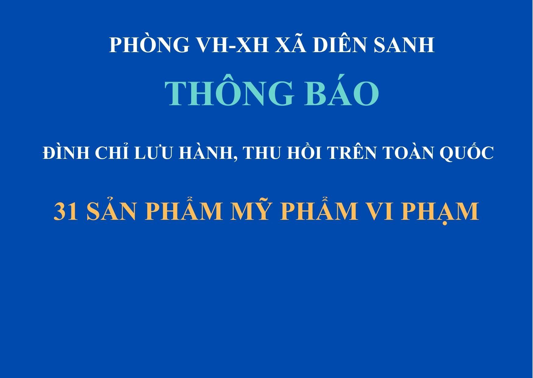 Đình chỉ lưu hành, thu hồi trên toàn quốc 31 sản phẩm mỹ phẩm vi phạm