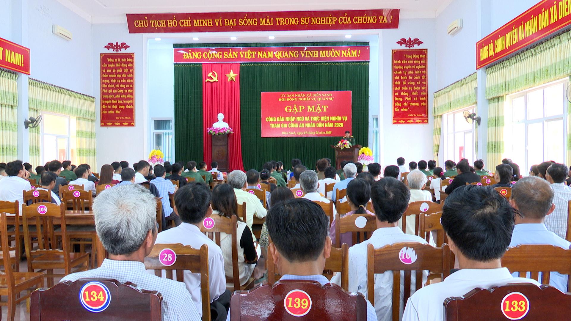 Ngày 27/02/2026, trong không khí phấn khởi của những ngày đầu xuân Bính Ngọ, Hội đồng Nghĩa vụ quân sự xã Diên Sanh đã tổ chức buổi gặp mặt, tặng quà và động viên các tân binh chuẩn bị lên đường thực hiện nghĩa vụ quân sự và công an nhân dân năm 2026.