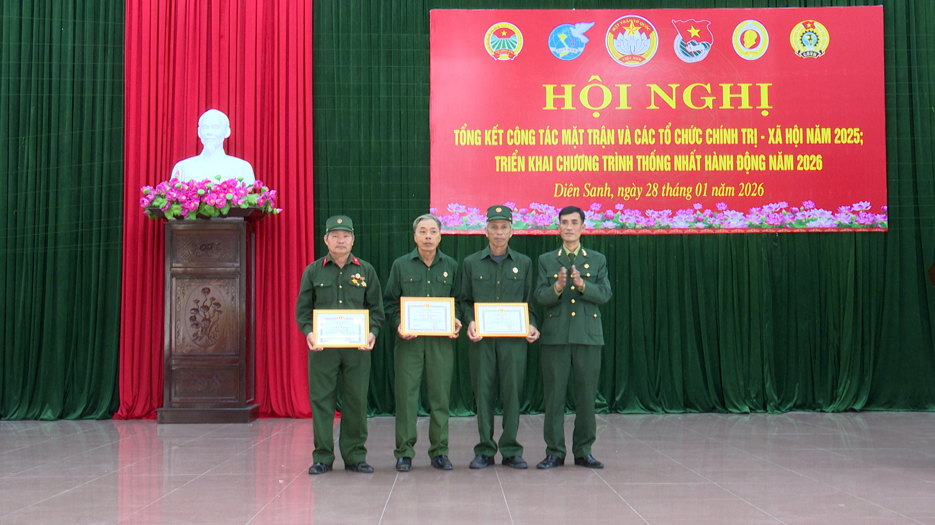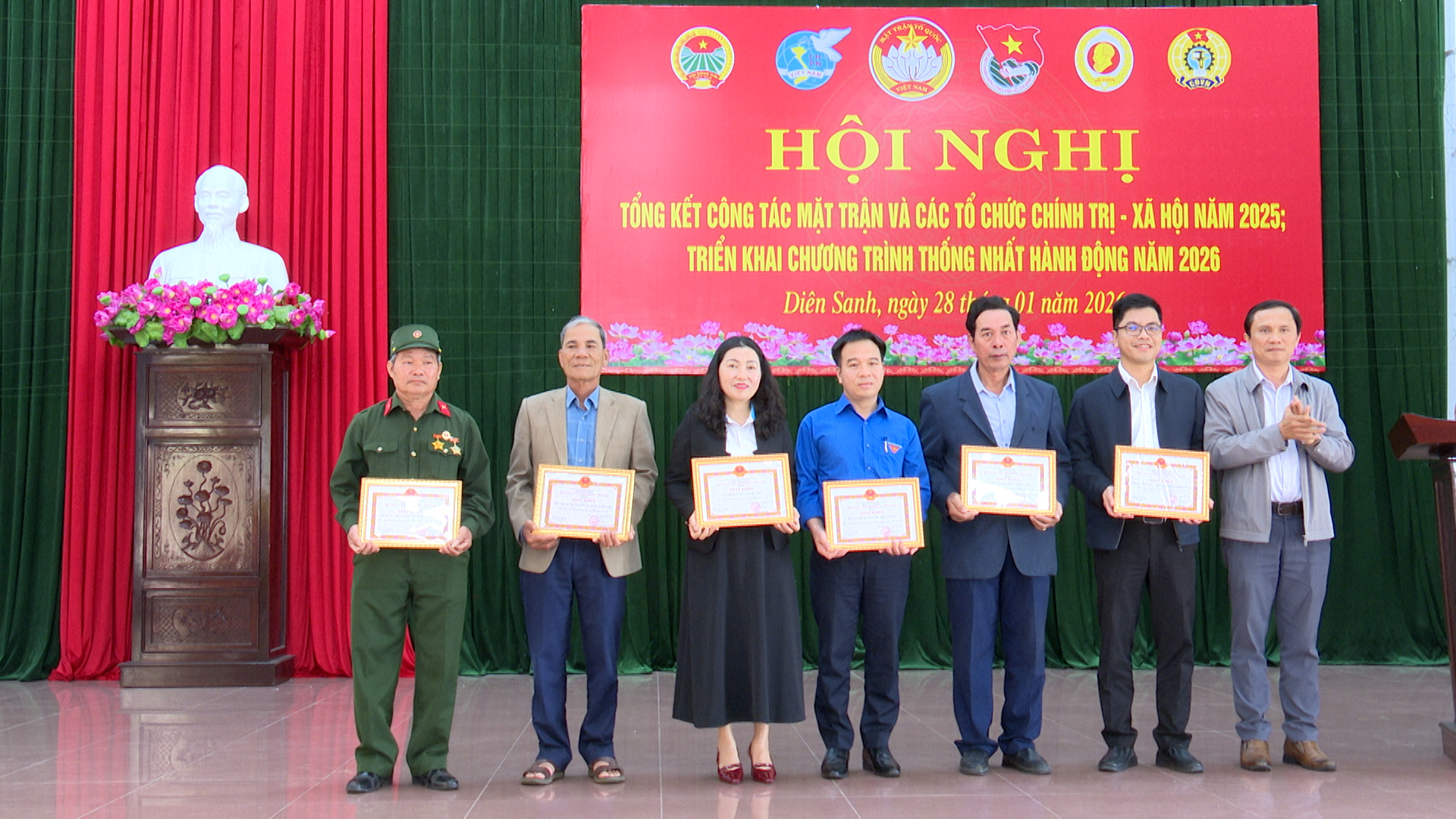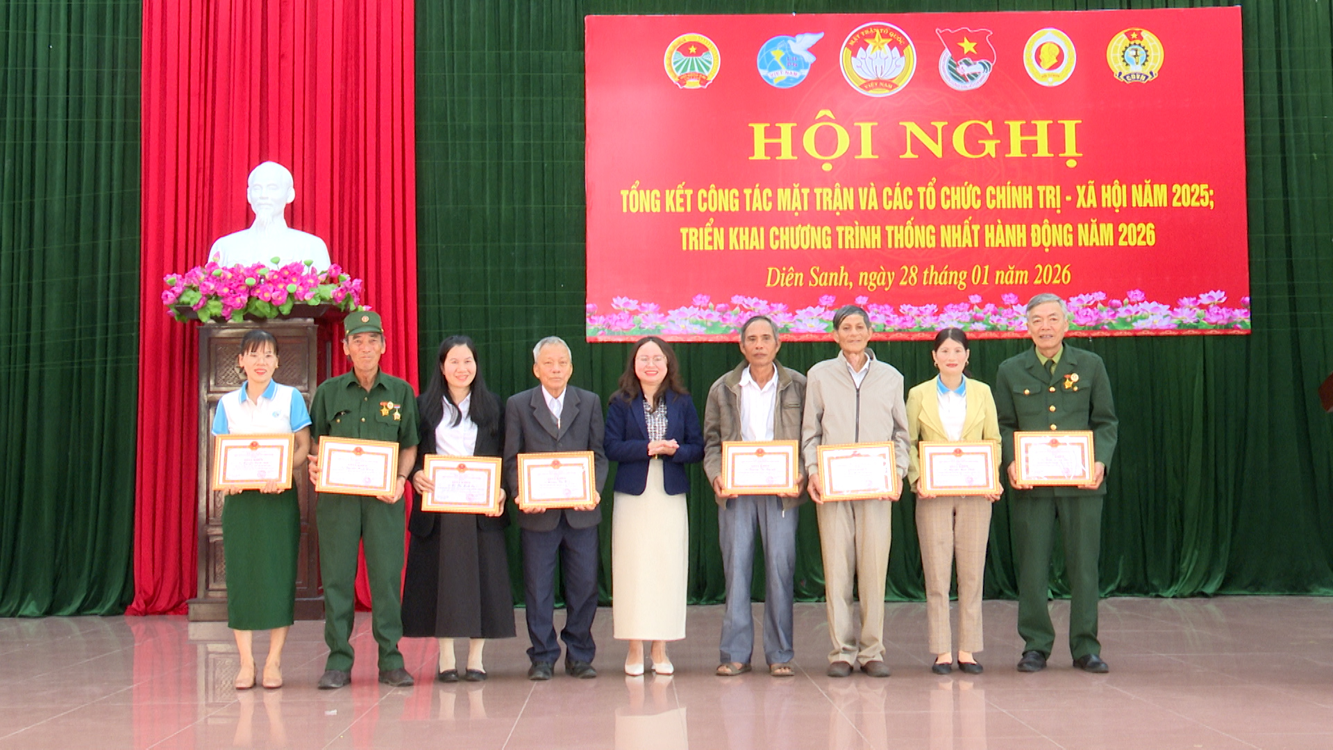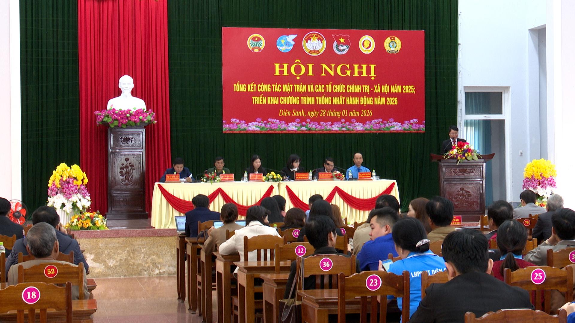 Ngày 28/01/2026, Ủy ban MTTQ Việt Nam xã Diên Sanh tổ chức hội nghị tổng kết công tác Mặt trận và các tổ chức chính trị-xã hội năm 2025, triển khai Chương trình phối hợp thống nhất hành động năm 2026.