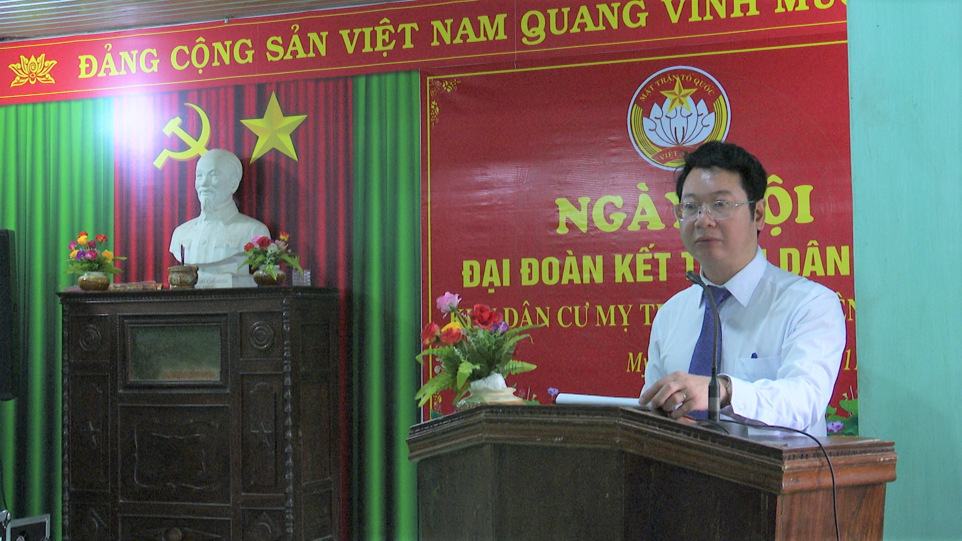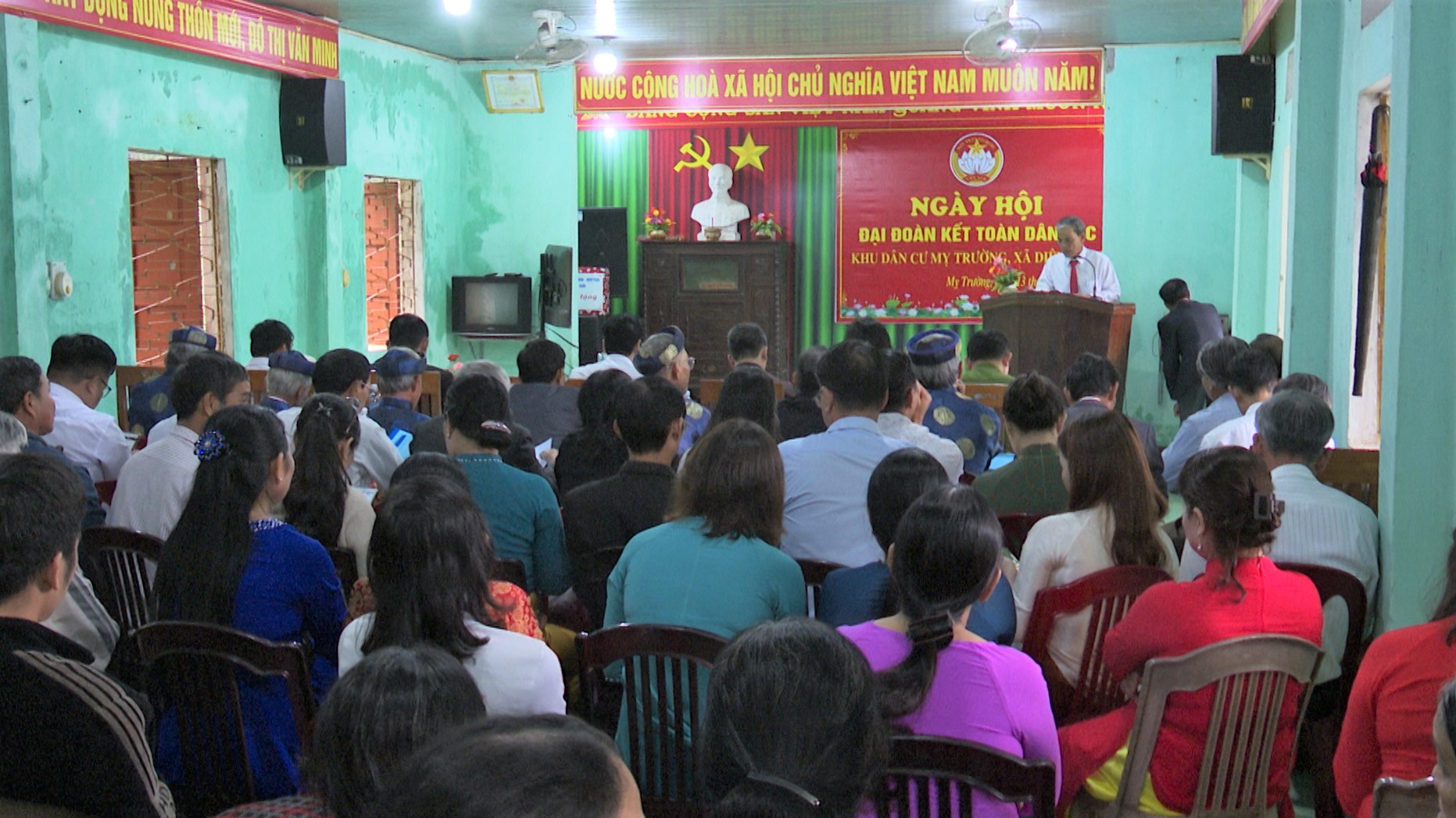 Phát biểu tại buổi lễ, đồng chí Trương Chí Hiếu-Bí thư Đảng ủy, Chủ tịch Hội đồng nhân dân xã bày tỏ niềm vui mừng đã cùng bà con nhân dân dự Ngày hội Đại đoàn kết toàn dân tộc tại thôn Mỵ Trường-một ngày hội lớn, ấm áp tình làng nghĩa xóm, gắn bó keo sơn giữa Đảng, Chính quyền và Nhân Dân. Nhìn lại những kết quả đã đạt được trong thời gian qua, đồng chí Bí thư Đảng ủy xã khảng định rằng Mỵ Trường đã trở thành một điểm sáng trong phong trào xây dựng nông thôn mới và đoàn kết cộng đồng. Nêu cao tinh thần tự lực, tự cường, đoàn kết, giúp nhau phát triển kinh tế, mạnh dạn chuyển đổi cơ cấu cây trồng, vật nuôi, ứng dụng tiến bộ khoa học kỹ thuật vào sản xuất, kinh doanh tại địa phương đã mang lại hiệu quả cao, đạt được nhiều kết quả đáng tự hào.