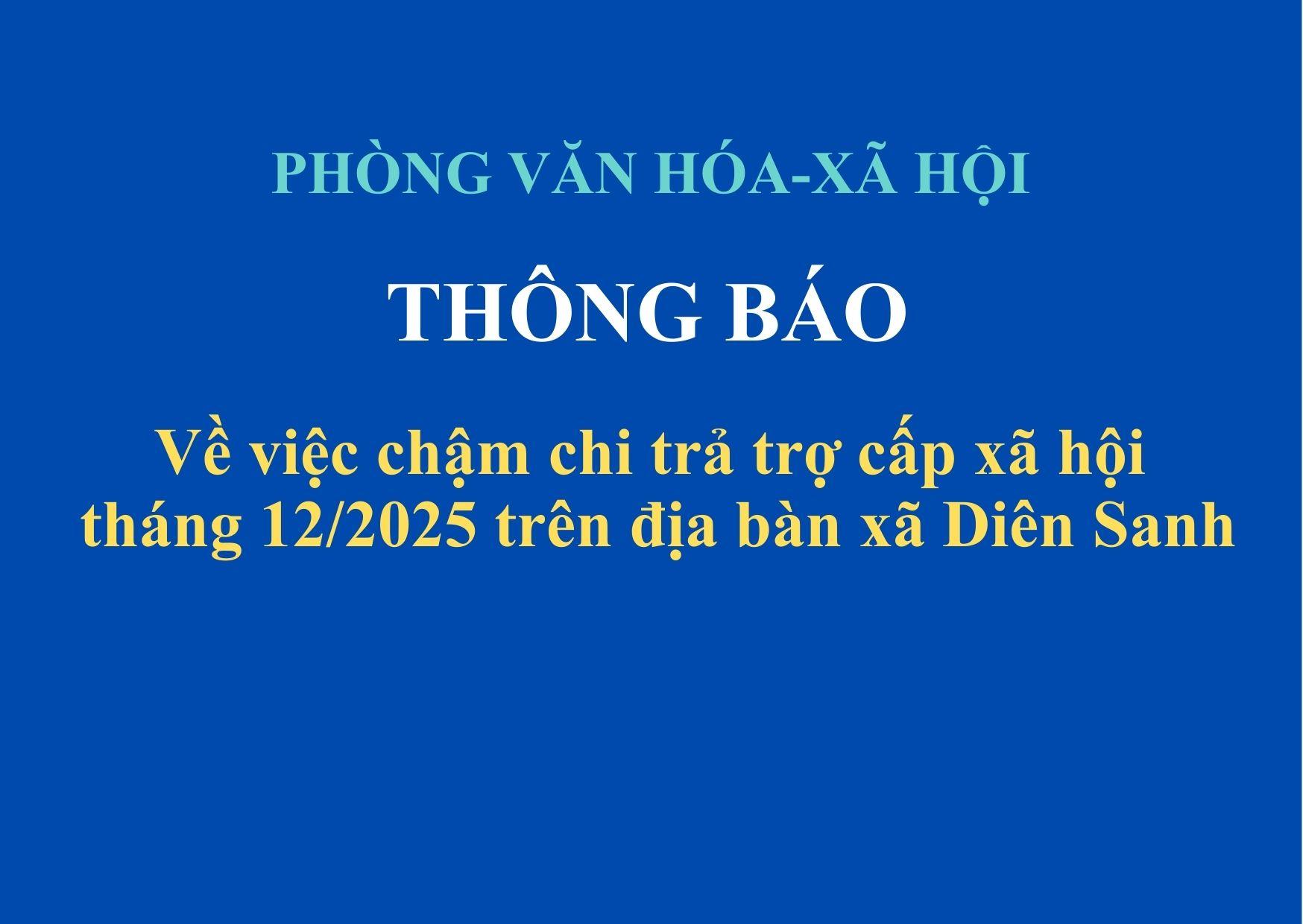 THÔNG BÁO: Về việc chậm chi trả trợ cấp xã hội tháng 12/2025